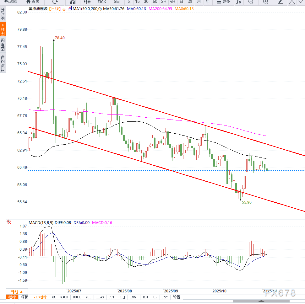 周三亚盘时段,美原油交投于60.12美元/桶,延续震荡下行,消息面上,API公布数据显示,最新一周美国原油库存骤降 650万桶,远高于市场预期的约 130万桶。 这一数据表明,美国国内需求有所回升,或者出口增加,同时也反映出炼厂进入季节性扩产阶段,对原油的消耗明显加快。